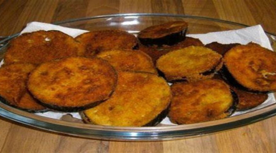 Certifique-se de que cada rodela esteja completamente coberta pelas farinhas. Aqueça óleo suficiente em uma frigideira grande para cobrir as rodelas de berinjela. Quando o óleo estiver quente, adicione as rodelas em pequenos lotes e frite-as até que fiquem douradas e crocantes, aproximadamente 3 a 4 minutos de cada lado. Retire as rodelas de berinjela da frigideira com uma escumadeira e coloque-as sobre papel toalha para escorrer o excesso de óleo.